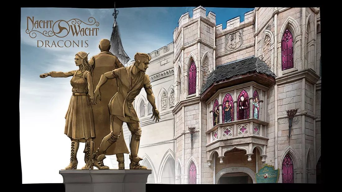 Keelin, Vladimir en Wilko hebben in Plopsaland De Panne een mysterieus kasteel ontdekt dat al jaren wordt geteisterd door de machtige draak Draconis. Een monster uit de onderwereld dat zo gevaarlijk is dat de Nachtwacht jouw hulp nodig heeft. Ben jij dapper genoeg om Draconis te bedwingen met een helse rit op deze achtbaan? De Nachtwacht zal je eeuwig dankbaar zijn. Na je spannend avontuur kan je het binnenplein van het kasteel verder verkennen en een leuke selfie met het standbeeld van De Nachtwacht nemen. Zo wordt jouw heldendaad vereeuwigd en geniet je eeuwige roem.