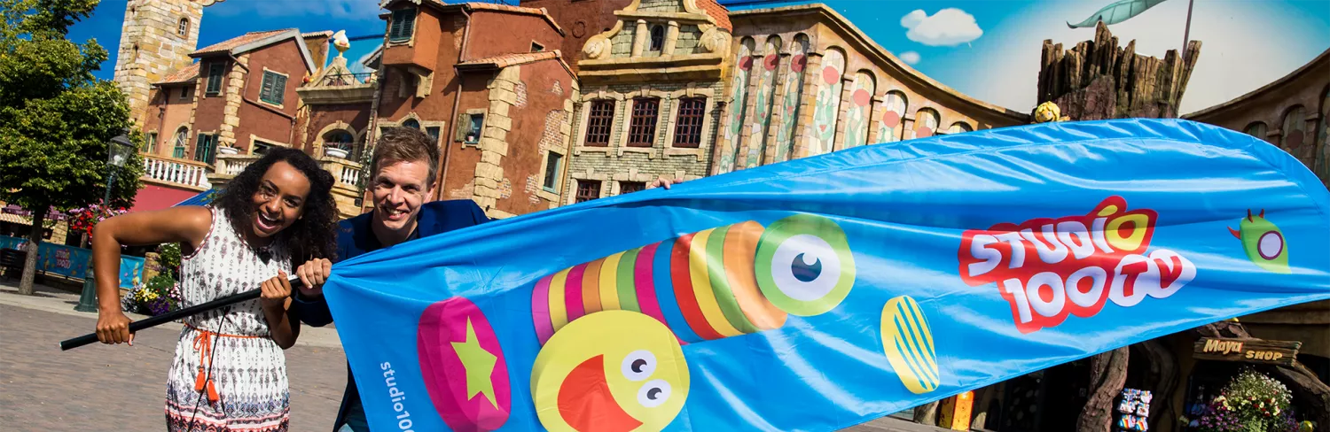 Plopsaland De Panne werd zondag het decor van Studio 100 TV. James en Annabet hadden iedereen uitgenodigd op een heuse fandag! Natuurlijk konden de helden van Studio 100 TV niet ontbreken. Je kon zelf de show stelen door een foto te laten nemen aan de Studio 100 TV stand.