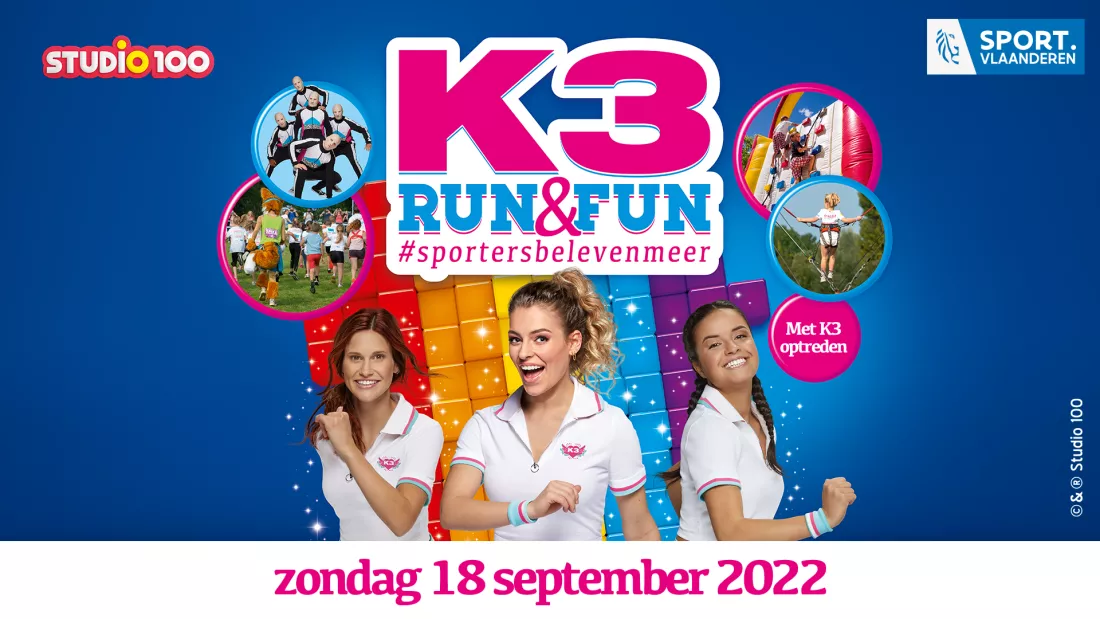 Op zondag 18 september wil Sport Vlaanderen, samen met K3 en Baba Yega, heel wat kinderen van 5 tot 12 jaar de kans geven om te sporten en een geweldig leuke dag te beleven samen met hun ouders, broers, zussen en vrienden. Voor twee groepen, een in de ochtend en een in de namiddag, van telkens 1.500 kinderen organiseert Sport Vlaanderen een loopevent. K3 sluit de ochtend af met een optreden, Baba Yega doet dat in de namiddag. Anders dan vorig jaar kan iedereen een hele dag blijven. Want naast de loopsessies organiseren verschillende sportfederaties initiaties, er zijn kennismakingsspelletjes, randanimatie, eten en drinken. In totaal zullen op 18 september meer dan 10.000 mensen welkom zijn op het domein van Sport Vlaanderen Hofstade.