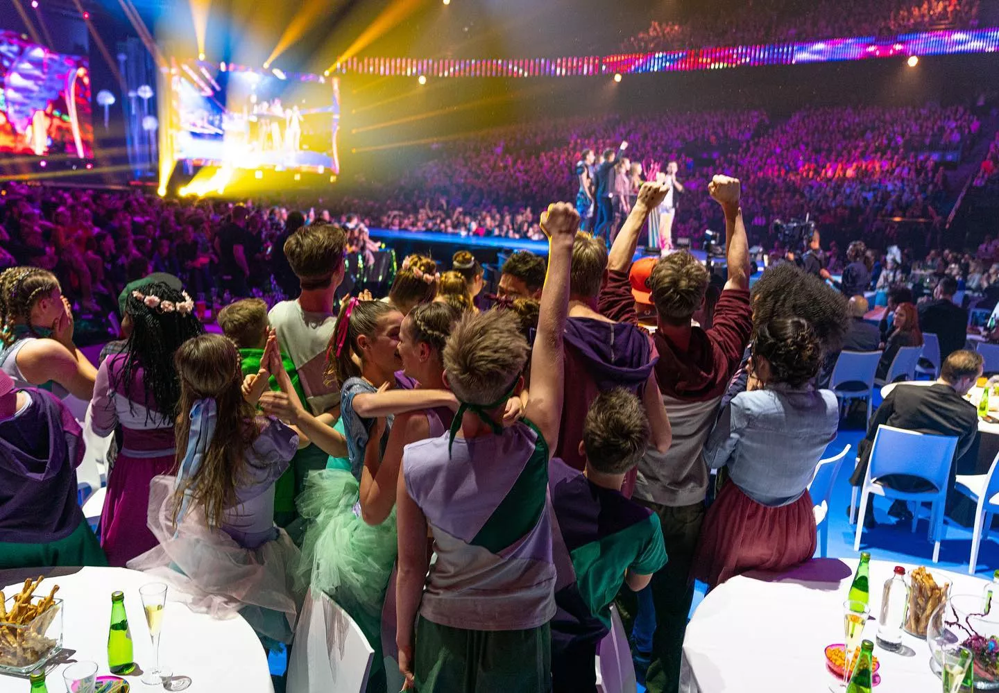 Tijdens de awardshow van Ketnet gisteren in het Sportpaleis brachten de acteurs van Ketnet Musical samen met Campus 12 de titelsong Knock-out.