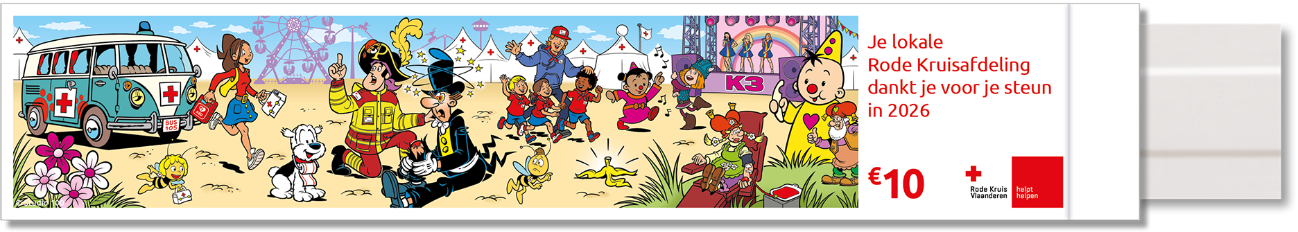 In 2026 krijgt de pleister van Rode Kruis-Vlaanderen een magische touch: enkele van onze geliefde Studio 100 iconen, waaronder Samson & Marie, Piet Piraat en K3, schitteren op de verpakking van de jaarlijkse Pleisteractie.